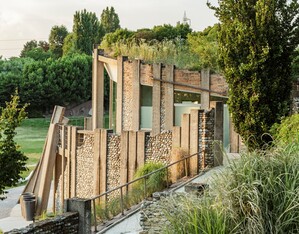 Il progetto è stato affidato allo studio SITE di James Wines, noto esponente della “Green Architecture”, che ha organizzato i percorsi a partire dal padiglione d’ingresso, architettura “leggera” con ampie vetrate aperte sul paesaggio, assecondando la morfologia dei luoghi ed enfatizzandone peculiarità e visuali.